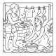 Kawaii girl at vanity with flower and plush – cute indoor coloring scene